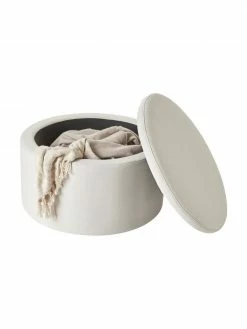 Westwing Collection Grand tabouret avec coffre tissu bouclé blanc Alida, Ă 50 x haut. 42 cm