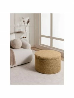 Tabouret bouclé avec rangement Milou, larg. 50 x haut. 45 cm