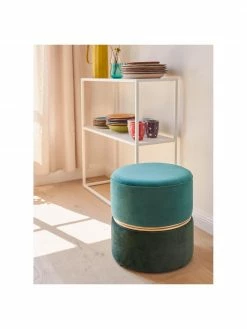 Alex Rivière x Westwing Collection Tabouret tissu bouclé beige clair Yves, larg. 43 x haut. 47 cm