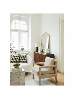 Westwing Collection Enfilade en bois clair avec portes coulissantes Calary, larg. 160 x haut. 75 cm