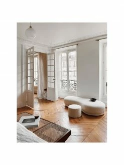 Westwing Collection Banquette tissu peluche couleur crème Alba, larg. 130 x prof. 62 cm