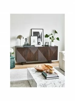 – Buffet haut avec verre rainurĂ© et cadre mĂ©tallique
