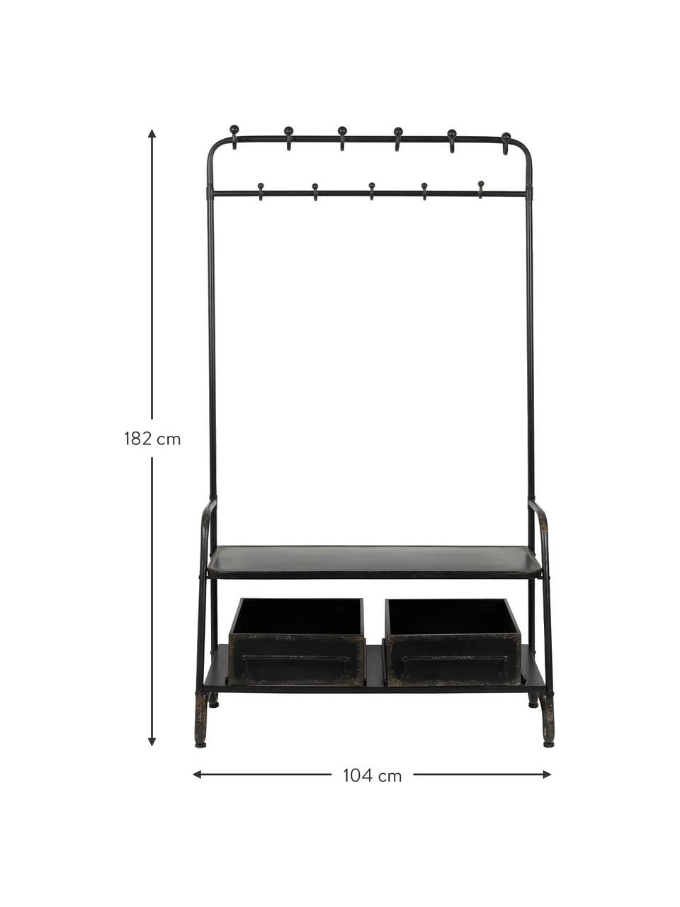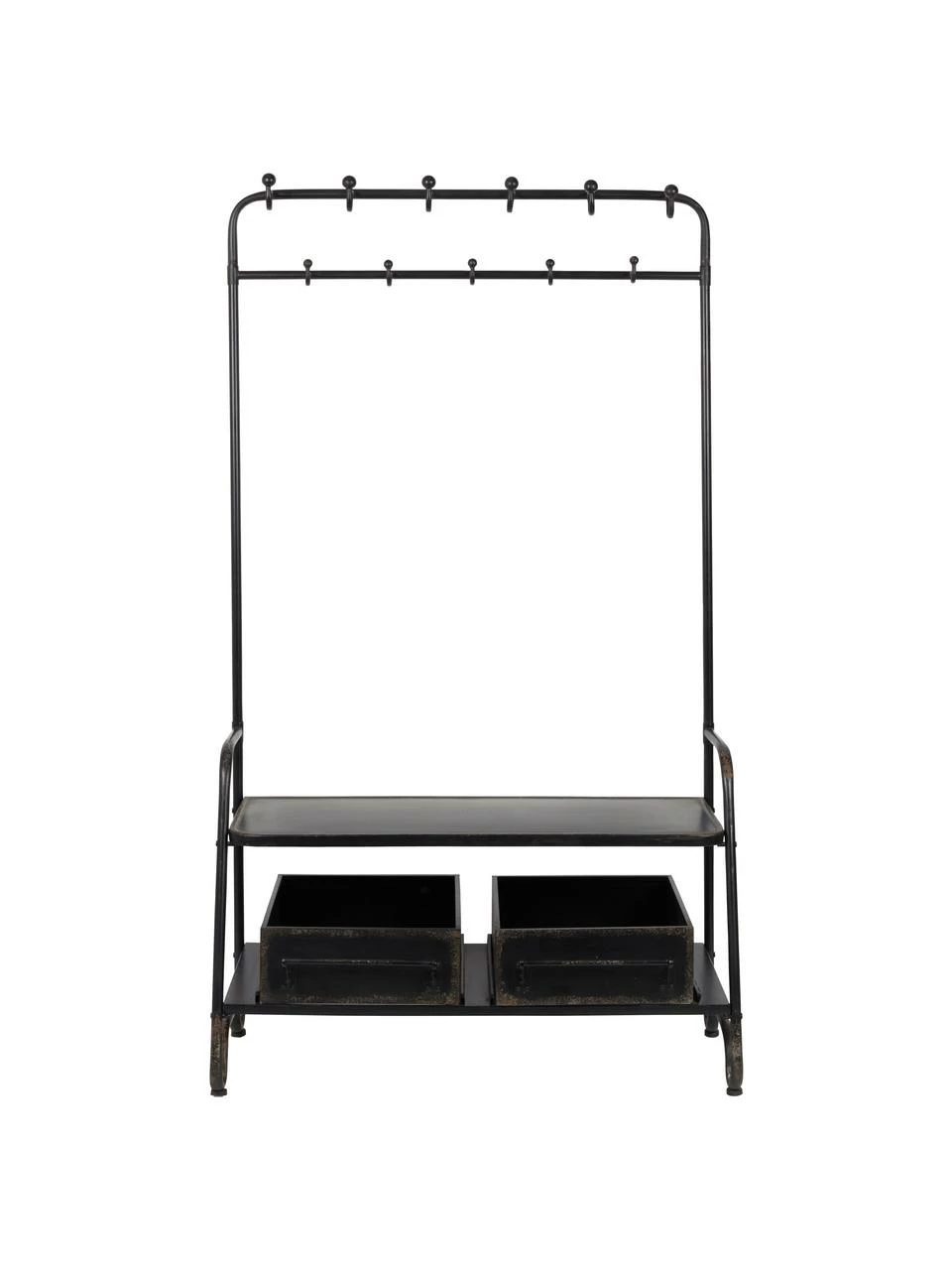 Meuble d’entrée à 6 grands et 5 petits crochets, 2 étagères et 2 boîtes de rangement amovibles
