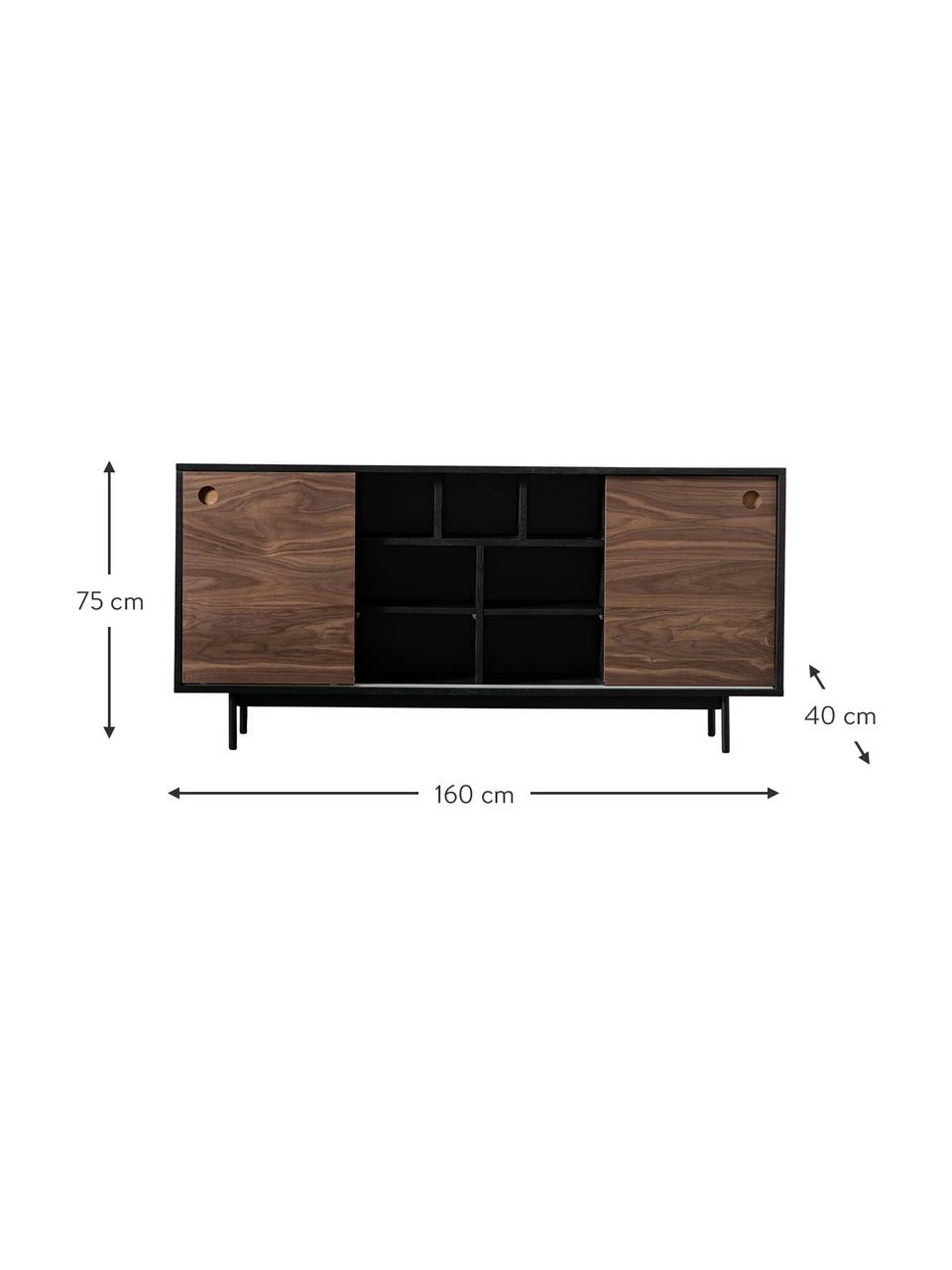 larg. 160 cm, haut. 75 cm, prof. 40 cm