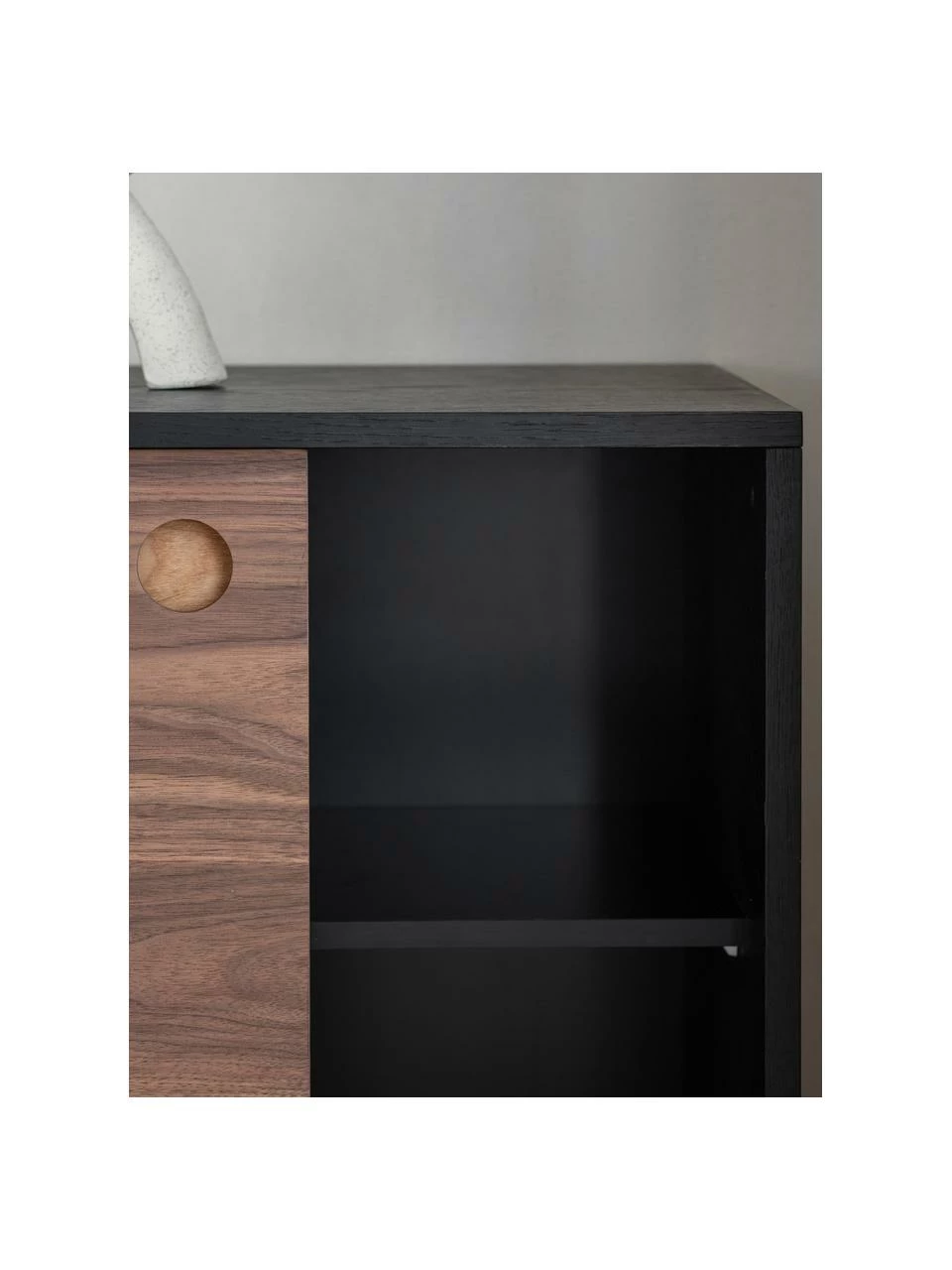 Portes : MDF (panneau en fibres de bois à densité moyenne) avec placage en noyer