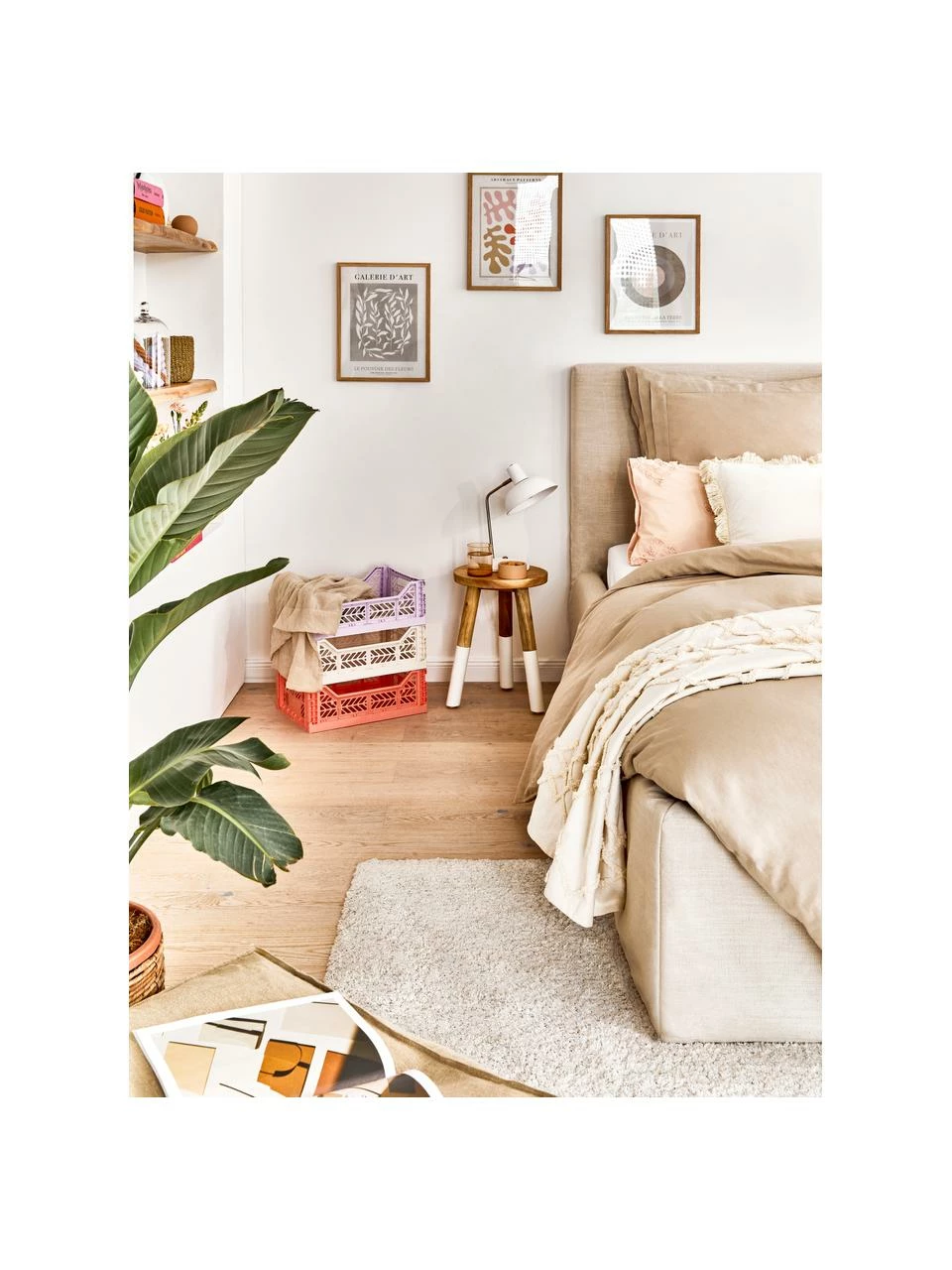 Westwing Collection Grand tabouret avec coffre tissu bouclé blanc Alida, Ø 50 x haut. 42 cm