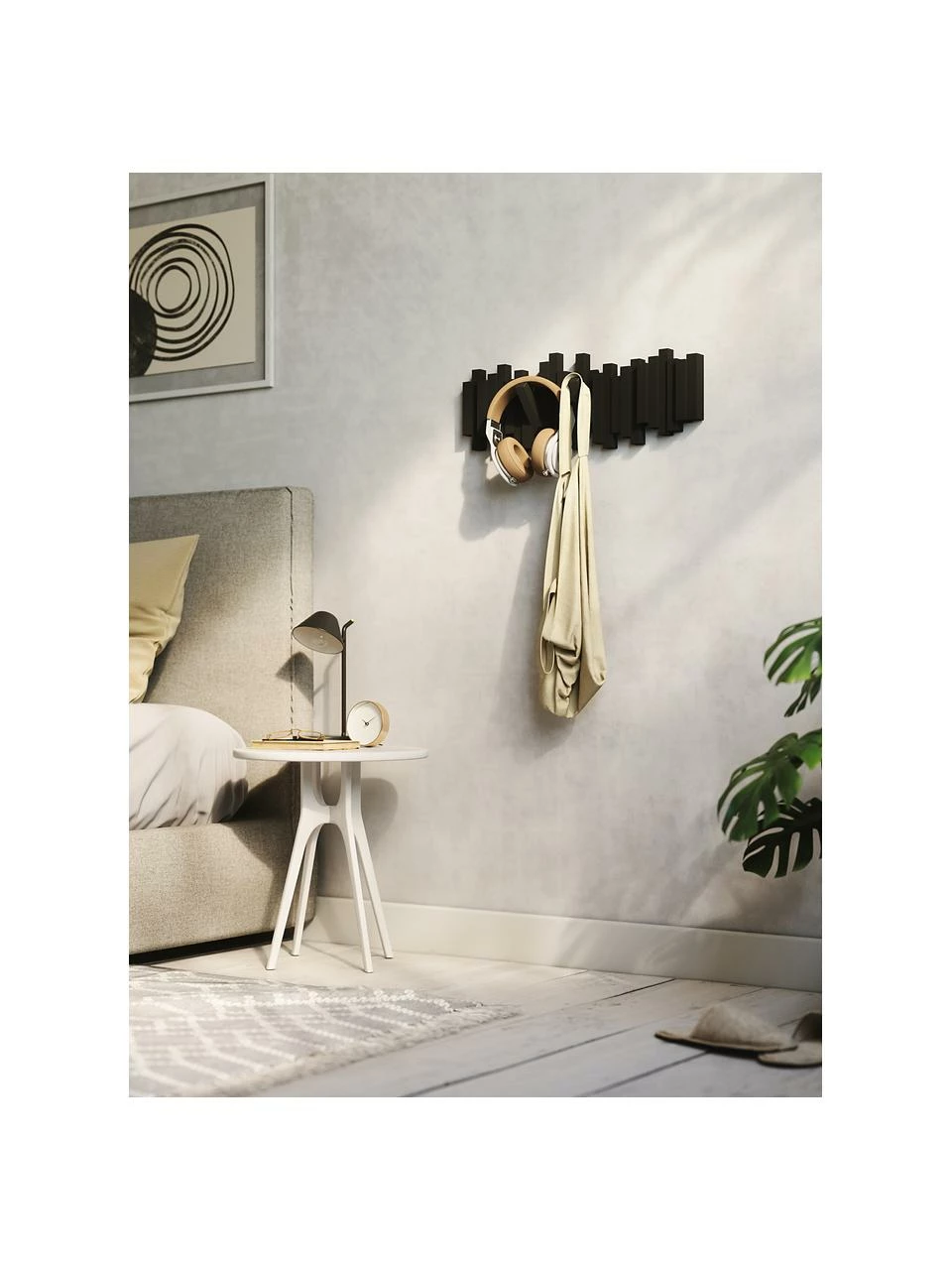 – Porte-manteau mural en plastique, à 5 crochets escamotables