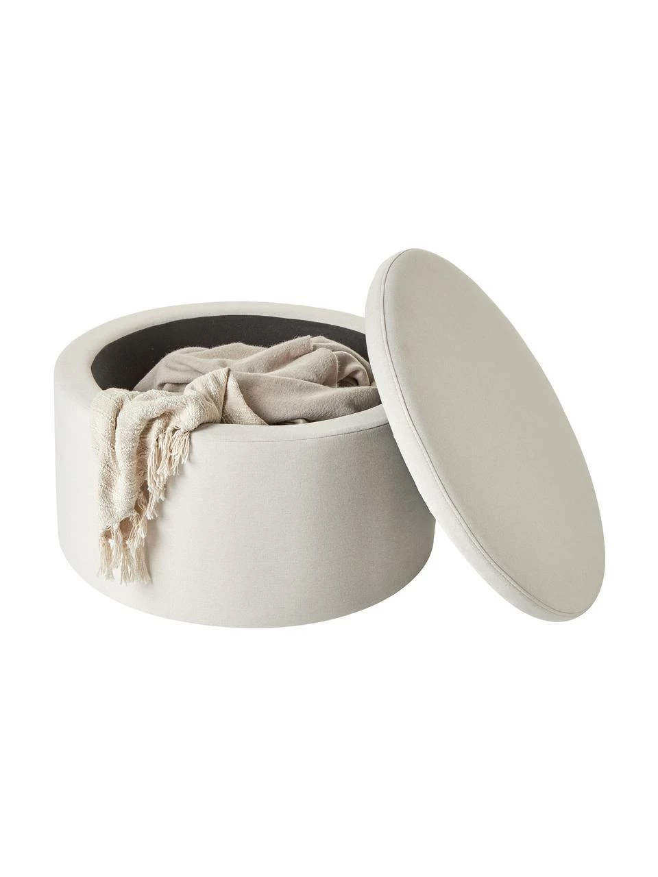 Westwing Collection Grand tabouret avec coffre beige Alida, Ø 70 x haut. 42 cm