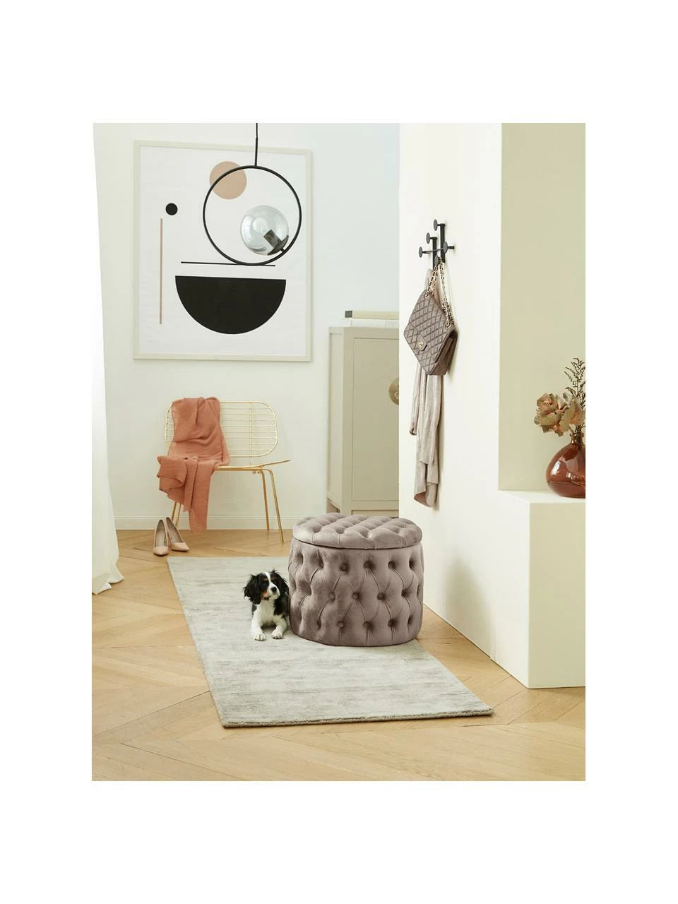 Que ce soit pour poser ses pieds ou comme siège supplémentaire pour les invités : Chiara est polyvalent et offre beaucoup d’espace de rangement. Couvertures, coussins et vêtements disparaissent sous le couvercle en un rien de temps. Nous aimons particulièrement la couverture en velours doux et les boutons décoratifs