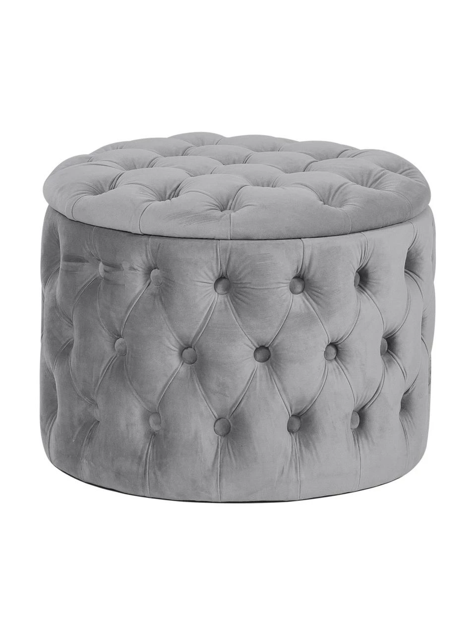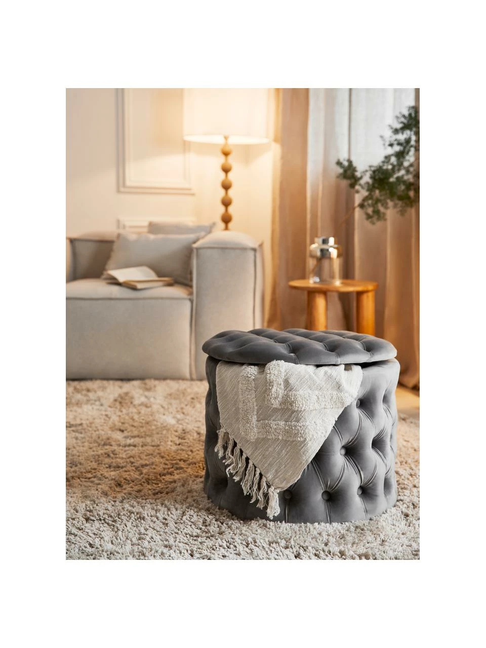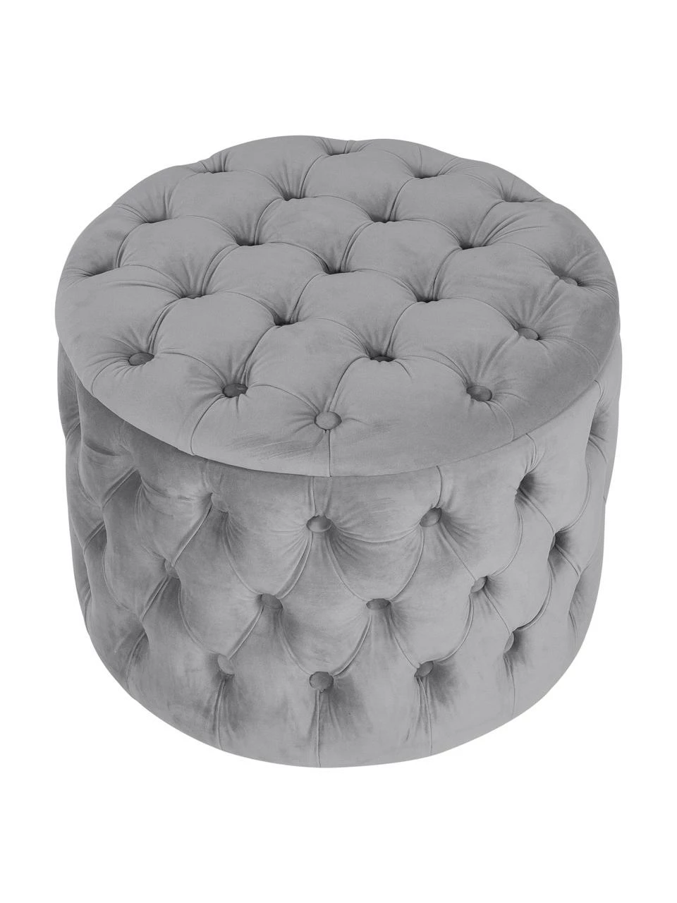 Westwing Collection Pouf coffre en velours gris Chiara, Ø 50 x haut. 42 cm – Image 6