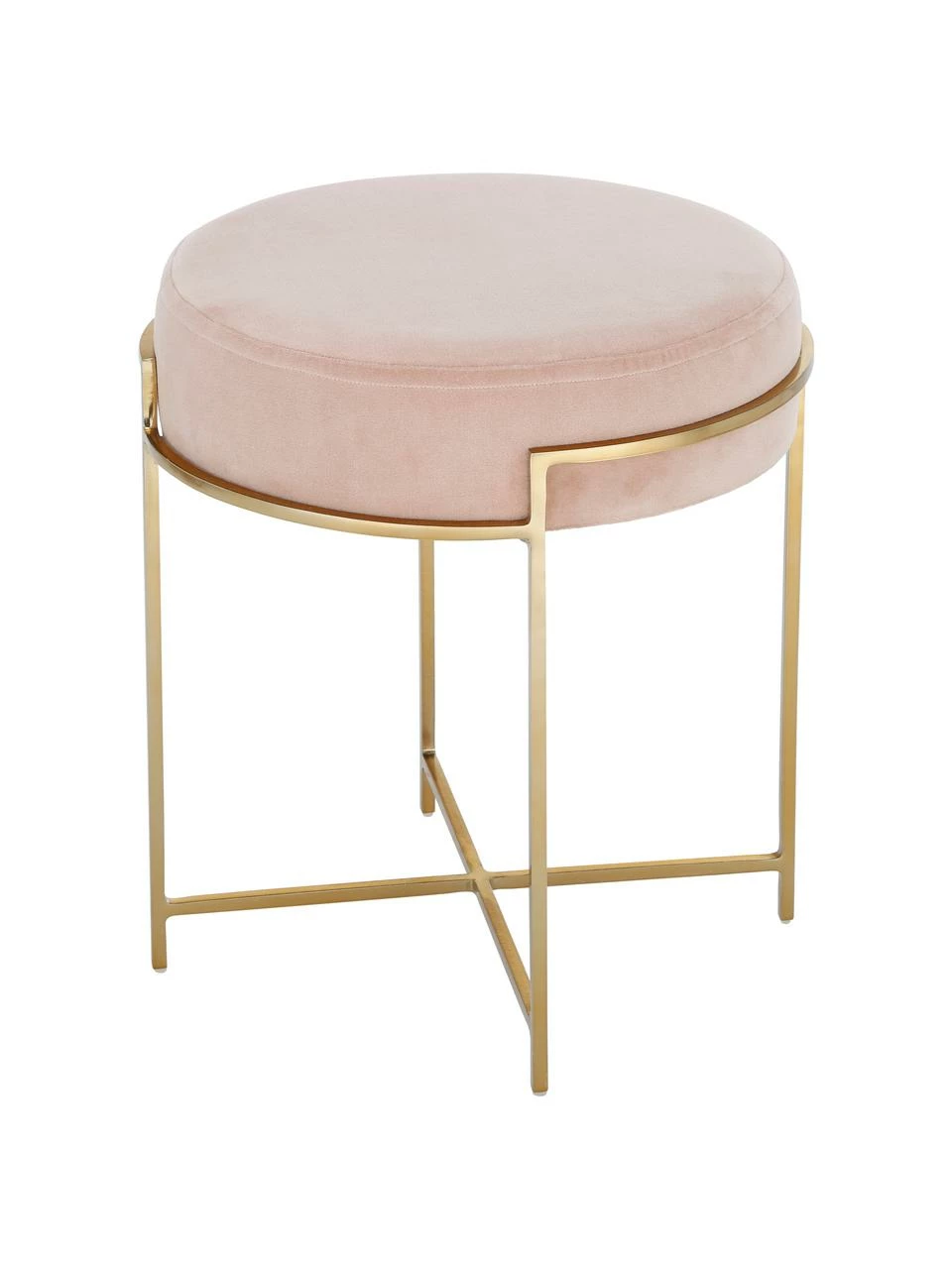 Tabouret en velours avec structure dorée en métal